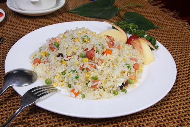 说到炒饭,不得不提的就是扬州炒饭了,扬州炒饭又名扬州蛋炒饭,是江苏扬州经典的汉族小吃。相传源于隋朝,后经历代厨师逐步创新,结合淮扬菜特点,发展而成。广义的扬州炒饭,品种多,有“金裹银”、“什锦蛋炒饭”及“青菜炒饭”等。其中,什锦蛋炒饭是最典型的品种。制作时,先将鸡蛋炒好,再将其他配料炒熟并调好味,盛起备用,然后炒米饭,最后将炒好的鸡蛋和其它配料倒入一半炒匀,炒匀后盛出三分之二放在盘中,再将剩下的配料与锅中的米饭炒匀,盖在盘中的炒饭上。