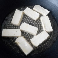 1、豆腐切块入锅煎