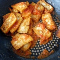 7、倒入准备好的汁进去,不一定非要到完,根据豆腐量决定,但最好多汁一点