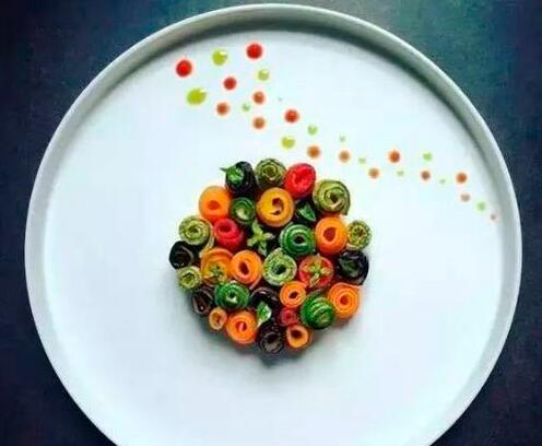 菜类盘饰主要利用可食用的蔬菜来创意造型,如瓜类、菜叶类、根茎类等。