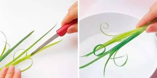 黄瓜切薄片,折叠成适合的样式,沿圆盘摆成圆形围边,搭配其它清爽的颜色,可组合成美观的盘饰。经常以平面盘饰为主。
