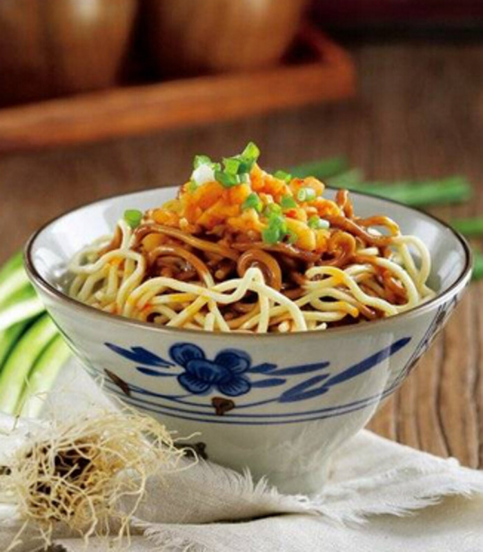 面条劲道有嚼劲,拌着麻酱,香油,五香酱,蚝油,再撒上花生碎,香葱,生菜。色泽亮丽,滋味鲜美。