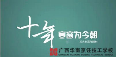 最后,广西华南烹饪技工学校祝全国所有的考生,考试顺利,金榜题名。无论你考的好与坏,只要你想学一门手艺,广西华南烹饪技工学校的大门永远向你敞开。