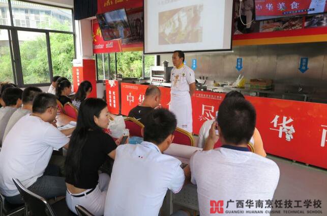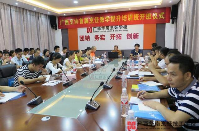 当前餐饮行业以及烹饪职业教育发展迅猛,报读各校烹饪专业学生日渐增多,对烹饪专业师资能力提出了更高的要求和挑战。为进一步提高烹饪专业院校教学质量,加强职业院校“双师”型师资队伍建设,提升烹饪骨干教师在烹饪课程资源开发与建设、菜品研发与创新设计的能力以及烹饪实操教学技能,广西烹饪餐饮行业协会于2017年16-18日在广西华南烹饪技工学校举办2017年暑期烹饪教学技能提升培训班。来自全区10多所职业院校的40多名教师和个别企业的总厨参加了培训。