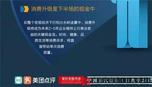2、美团点评研究院发布的《中国餐饮报告(白皮书2017)》中,指出目前餐饮行业正面临消费升级的重要节点,未来既健康又高颜值的餐厅更容易吸引新生代消费者。