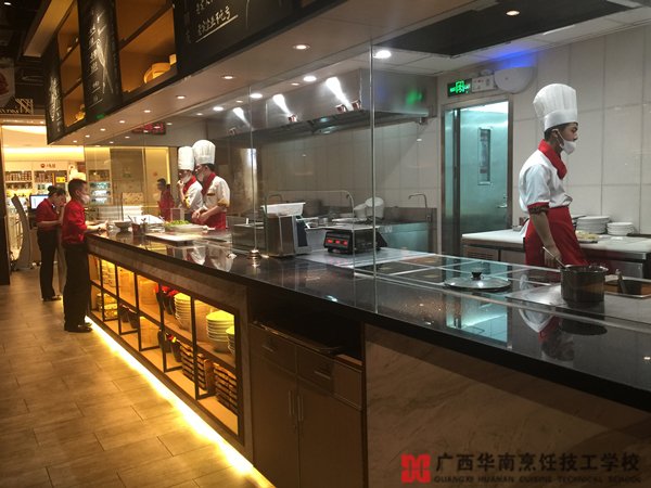 在与该店厨师长交流了我校毕业生在工作岗位上的工作能力、态度、发展空间及提升潜力等问题时,厨师长说道:“广西华南烹饪技工学校的学生努力认真,广州九毛九餐饮连锁股份有限公司作为用人单位也定期会按照员工意愿及考核结果,考量性的给学生进行轮岗。相信广西华南烹饪技工学校的学生在广州九毛九餐饮连锁股份有限公司经过一段时间的培训和成长,一定能够胜任重要技术岗位,担当起重要的工作责任。”毕业学子均反映在广州九毛九餐饮连锁股份有限公司的工作氛围他们很喜欢,宿舍环境好,待遇满意,工作餐也很好。