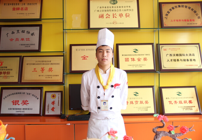 桂林是一个众多少数民族聚居地,不同民族的生活饮食特点,形成了独特的饮食文化。桂林地方风味菜、纯朴自然、口味浓郁、酸甜兼容,有着浓浓的草根情怀。生活在美丽的桂林山水之中的王文祥每天都在美食的熏陶下,对学习烹饪充满了兴趣。在对比广西其他学校之后王文祥选择了到广西最好的厨师学校广西华南烹饪学校学习,从进到学校在老师的热心帮助下王文祥的学习突飞猛进不仅成为了班里面的学习能手。同时,在老师同学们的鼓励和推选下成为了金牌八班班长。