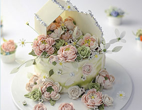 (4)韩裱技巧:玫瑰花、澳丝丁、绣花、芍药花、帝王花、康乃馨等