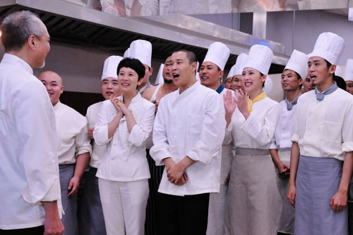 厨师们在厨房中开心工作
