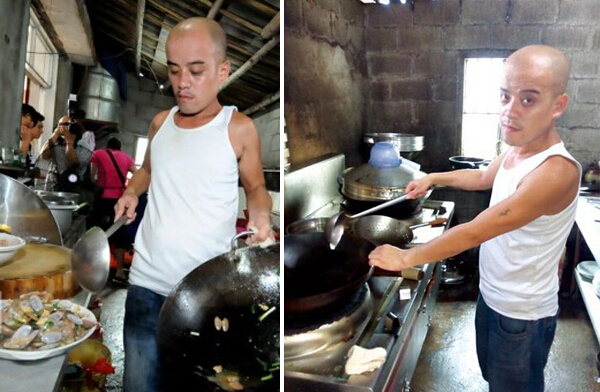由于大排档的生意太火爆,在厨房里,黄彬忙得晕头转向,经常一边炒菜一边接电话。对于“粉丝”提出的合影要求,他并不拒绝,但实在没空走出厨房。于是,大家只好在厨房里拍照。