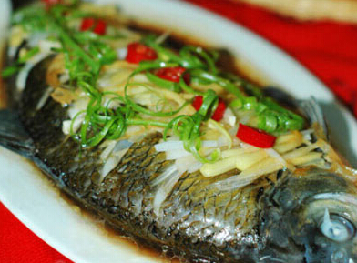 调料:葱姜丝(各十根)、火腿丝(十根)、姜片(四片)、大蒜(五粒切片)、香菜、干红辣椒(适量)、盐(两茶匙)、白胡椒(一茶匙)、味精(半茶匙)、蒸鱼豉油(三汤匙)、料酒(半汤匙)、食用油(一汤匙)。