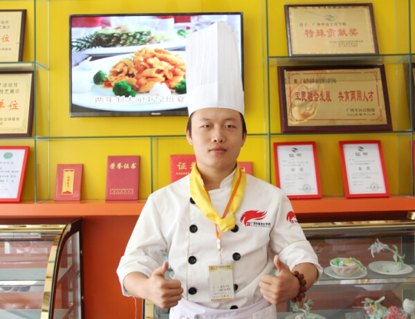 “选择广西华南烹饪学校的另一个原因是因为学校实施“技能+学历”教育,这样既可以满足我学历上的缺憾又可以实现我想做一名烹饪大厨的梦想”。
